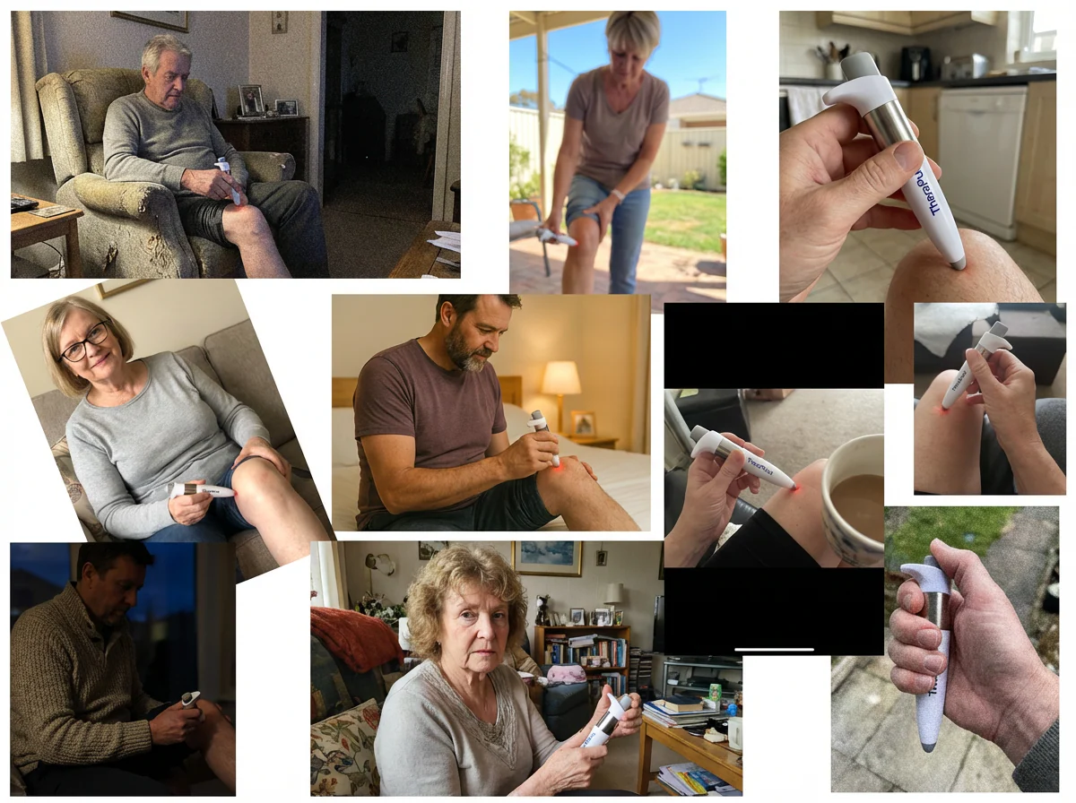 «Naquela noite, coloquei o dispositivo TheraPulse no meu joelho direito às 18h, conforme as instruções, e ativei o Protocolo de Estimulação Nervosa. A pulsação suave parecia terapêutica, mas eu não esperava nada.»