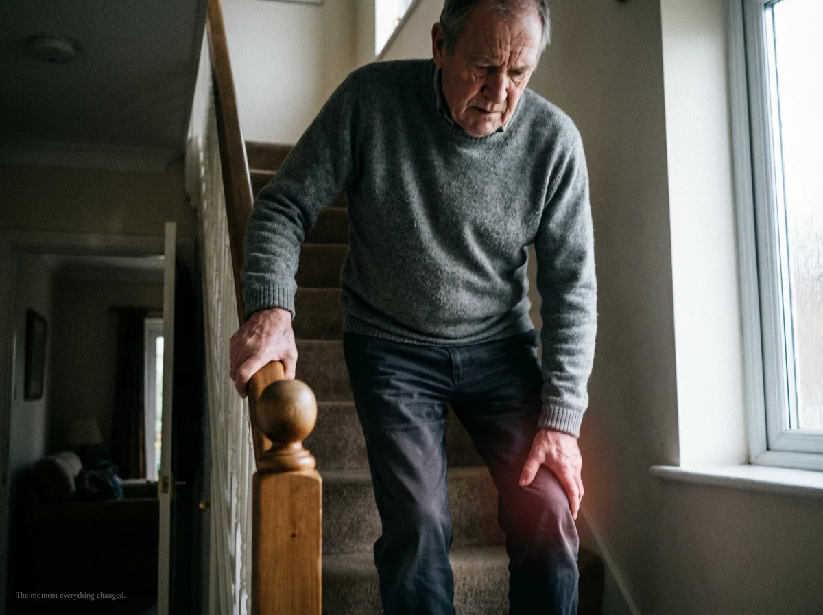 «A minha esposa olhou incrédula enquanto eu fazia um agachamento controlado pela primeira vez em anos. “Thomas... estás mesmo a dobrar esse joelho?”, sussurrou ela, espantada.»